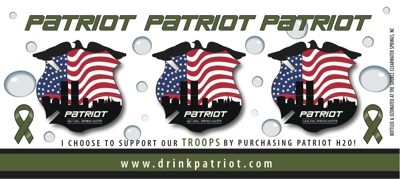 | Patriot Water™ is sold as single serve 20 oz bottles, as cases containing 24 - 20 oz bottles, and in pallets containing 1440 - 20 oz bottles. When ordering please order one color per case. Pallet orders may select up to four colors. Don't see us yet? Help spread the word. Tell your local retailer to stock us! *Special pricing available for events & groups* To ORDER or tell us where you want to see Patriot next please contact us at: info@drinkpatriot.com |
